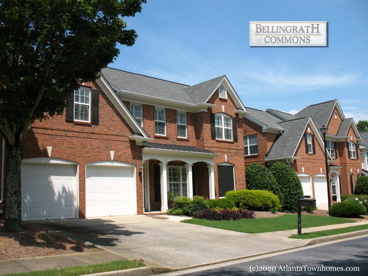 Bellingrath Commons is a popular townhome community in Johns Creek, (Used to be Alpharetta) GA off Haynes Bridge Rd, built 2001 by Pulte Homes. Bellingrath Commons features 2-story townhomes with 3 bedrooms, 2.5 bath, & 2 car garage. Each homes has the master bedroom on the main level. Expect 2-story foyer, vaulted ceiling in the living room & 9′ ceilings with crown molding on the main level, hardwood floors, fireplace, separate dining room, gourmet kitchen with granite and breakfast area, trey ceiling in the master bedroom, garden tub with separate shower in the master bath. Huge loft area! Private fenced backyards. There are a total of 48 homes in Bellingrath Commons.