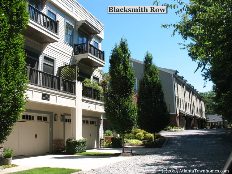 Blacksmith Row in a community of luxury townhomes in Roswell, GA built 2018-2024 in 2 phases. Phase 1 was built by Lehigh. Phase 2 by Miller Lowry Development. Community has a total of 17 homes in all.