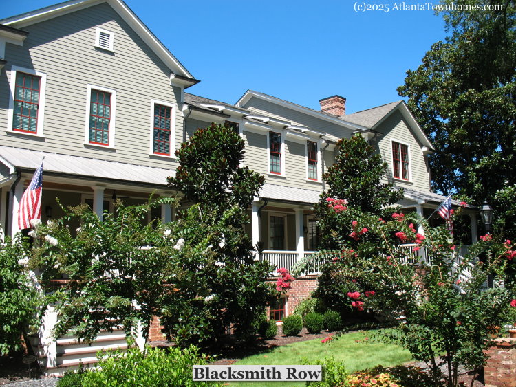 Blacksmith Row features upscale 3-story, 3-4 bedroom, 3-4.5 bath, 2 car garage townhomes. Expect top of the line finishes, generous sqft., spectacular location situated just steps away from the finest restaurants, trendy shops, and charming boutiques in Historic Roswell.