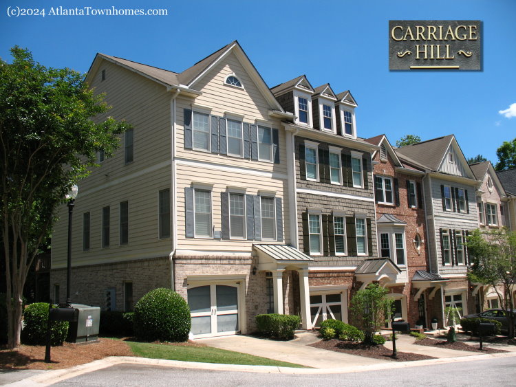 Carriage Hill is a small community of fee simple, 3-story townhomes in Smyrna, GA built 2004-05 by Traton Homes.  3-story, 3-4 bedrooms, 1 car garage plans.  Upscale finishes and open floor plans in each.