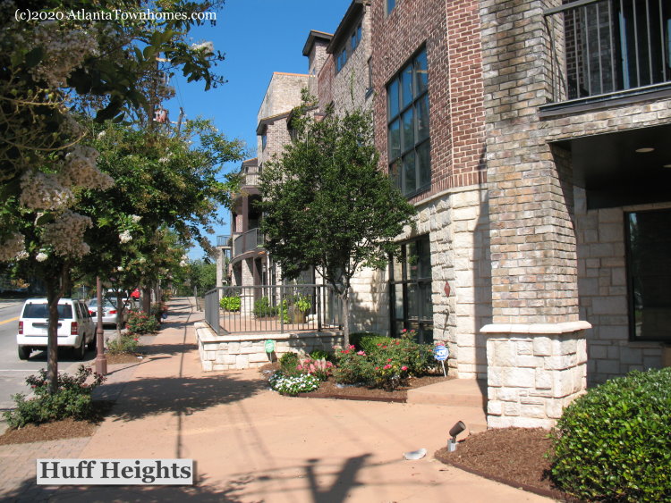 Huff Heights is a townhome community in Midtown Atlanta built 2008-2009 by Brock Built Homes. 28 three-level townhomes with 1 or 2 car garages. 2 and 3 bedroom floor plans, some with rooftop terraces with kitchenettes. Hardwoods, exposed brick walls, granite countertops, 10′ ceilings are the norm. Some homes with amazing views of Midtown, Buckhead, & Vinings! Community features retail/office on street level.