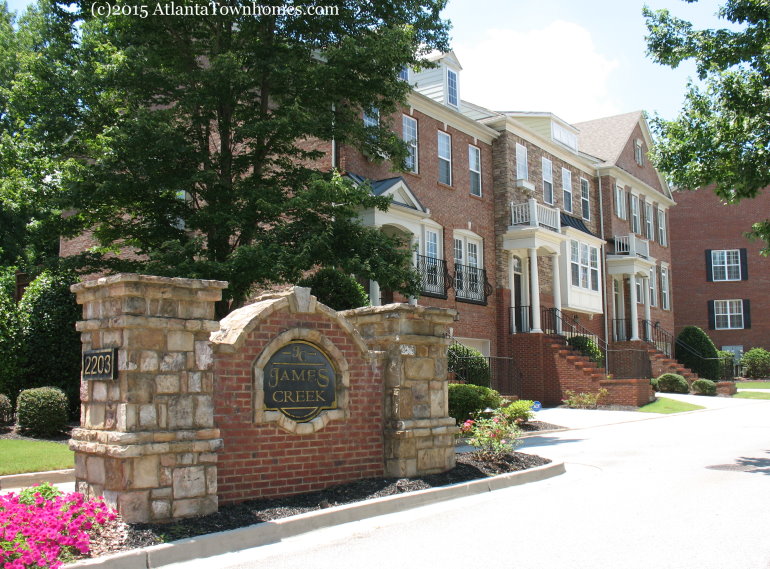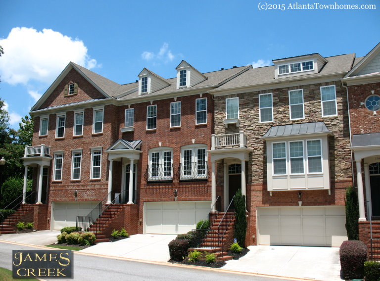 James Creek is a community of 28 fee simple townhomes built by Pulte Homes circa 2005-2006 & located in Vinings, Atlanta GA. James Creek features 3-story townhomes with 2-4 bedrooms, 2 car garages. 4-sided brick construction. Expect 9′ ceilings with crown molding, hardwoods on the main level, fireplace. Separate dining room with trey ceiling & judges paneling. Curved entry ways. Gourmet kitchen with granite counter tops, breakfast bar, breakfast area & view to the family room. Trey ceiling & walk in closet in the master bedroom. Double vanities, garden tub with separate shower in the master bath. Large private deck & patio.