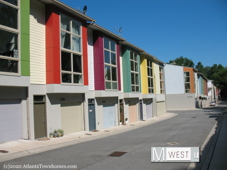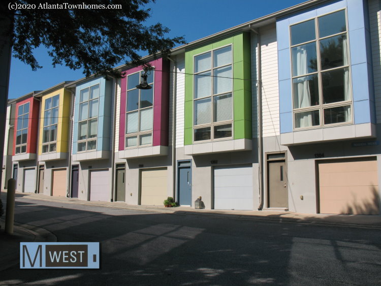 M West is a 2 & 3-story contemporary, loft-style townhome community. Open & light filled floor plans. Walls of windows, vaulted ceilings (I remember the model home even had a swing in the living room!) Hardwoods on main level, sealed concert floors on terrace level. Roof top decks & Atlanta skyline views. 1 & 2 car garages. Low maintenance metal exterior. Two phases: M West I and M West II built circa 2005-2007. 180 homes in all. Minutes to Downtown Atlanta, Atlantic Station, & Buckhead. M West offers a popular commute to Hartsfield-Jackson Airport.
