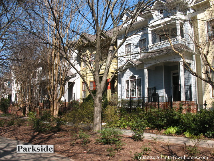 Parkside is a small community of 15 fee simple townhomes in Historic Atlanta, GA built 2003. San Francisco-esque Victorian style construction. 2 -story floor plans + basements, 3-4 bedrooms, 2 car garages (Some drive under, some over sized detached). Some townhomes with fenced back yards.