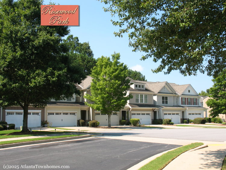 Rosewood Park in Alpharetta off of Hwy 9 is a community of Craftsman style townhomes established in 2003 by Eric Chafin Homes. In 2010, John Thomas Homes acquired the vacant lots and finished out the community. 2-story floor plans with 2-3 bedrooms, 1-2 car garages. Expect open floor plans, private backyards. Rosewood Park has 124 homes in all. Sought after location with Alpharetta address, but Forsyth County taxes & great schools!