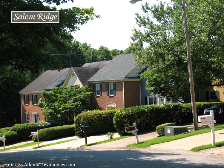 Salem Ridge is a close in, fee simple townhome community in East Cobb, Marietta, GA built 1981-1983. 2-story floor plans with 2-3 bedrooms, some with basements. Low monthly HOA fees.