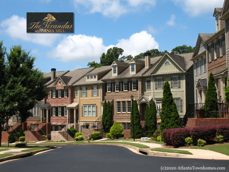 Verandas at Barnes Mill is a Community of 3-story fee simple townhomes started 2006 by Traton Homes. 3 & 4 bedroom floor plans, each with a 2 car garage and basement/terrace level room. Expect hardwood floors on the main level, granite counter tops in the kitchen. Direct access to The Silver Comet Trail. Close by shopping & restaurants. Community finished out by a different builder, Venture homes 2014-2015.